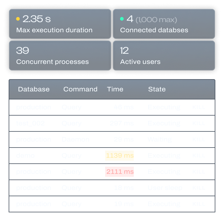 Flatten problematic demand spikes with configurable query blocking and throttling to ensure your database is handling queries in series, not in parallel.