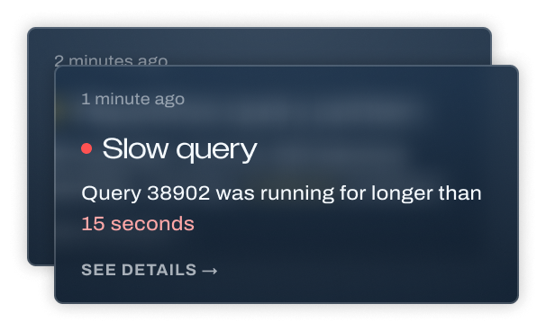 Stay on top of your databases with configurable notifications for things like repetitive queries, resource overutilization, and suspicious query patterns.